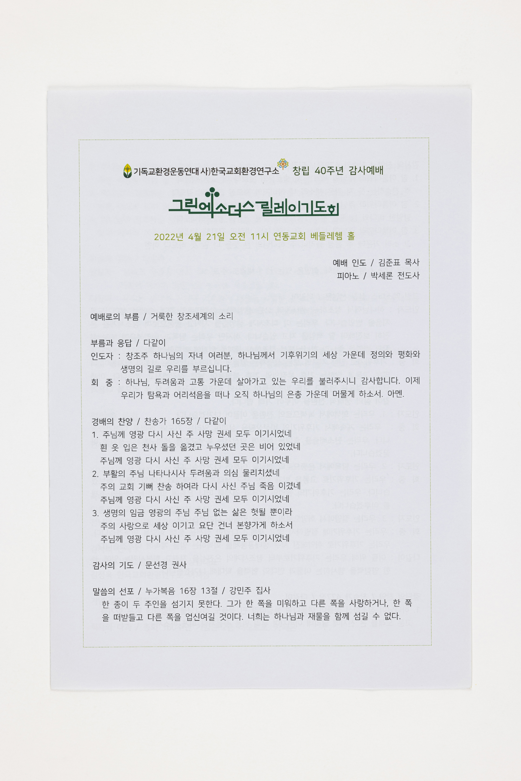 제목: 그린에소더스 릴레이 기도회, 2022.4.21.오전11시 연동교회 베들레헴 홀
