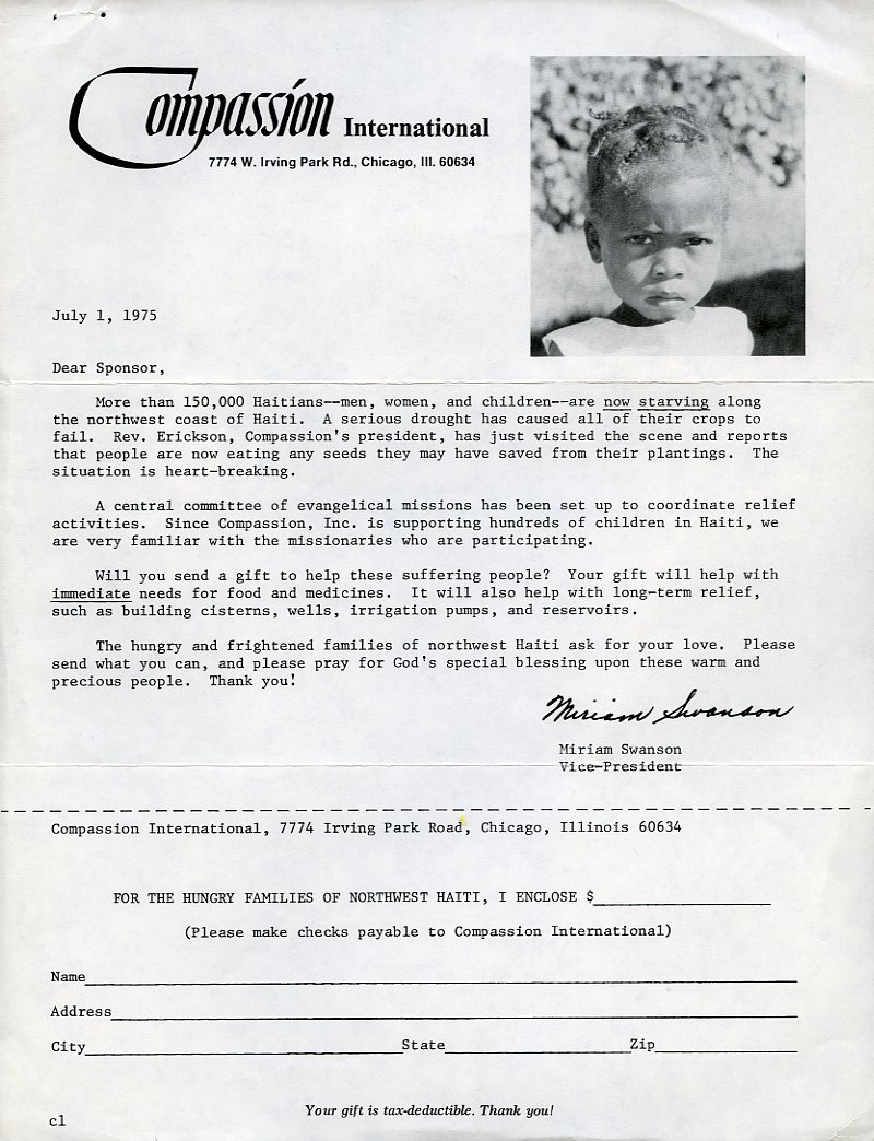 아이티에서 가뭄으로 인해 고통을 겪고 있는 15만 명의 이재민을 위한 긴급 구호를 호소하는 메시지이다.