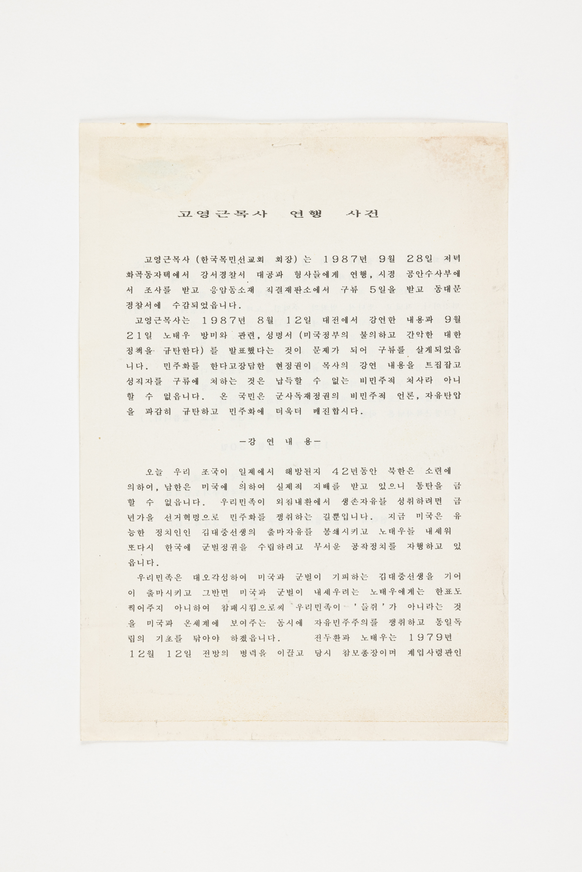 고영근 목사 소개, 강연내용. 1장.