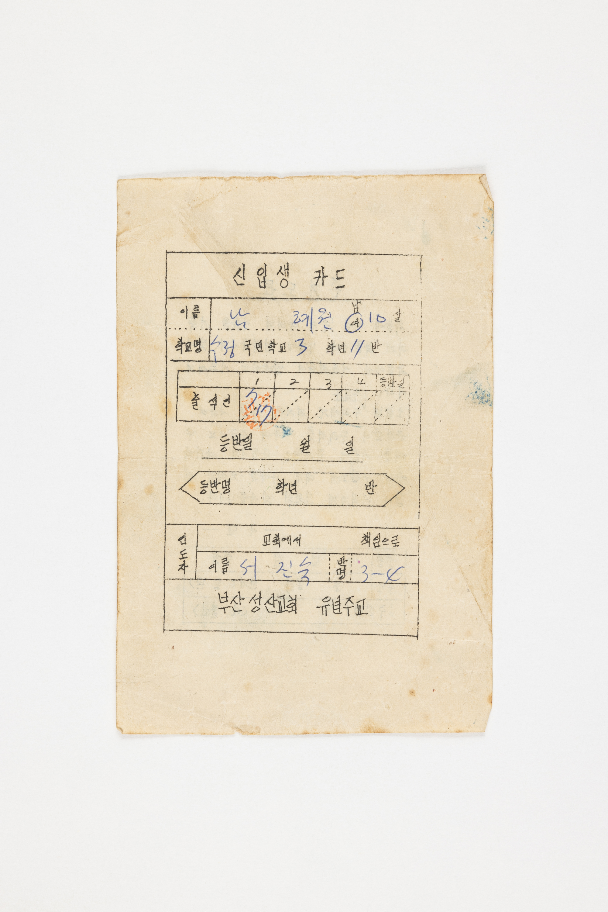 이름, 학교, 출석일수, 인도자 내용 포함.