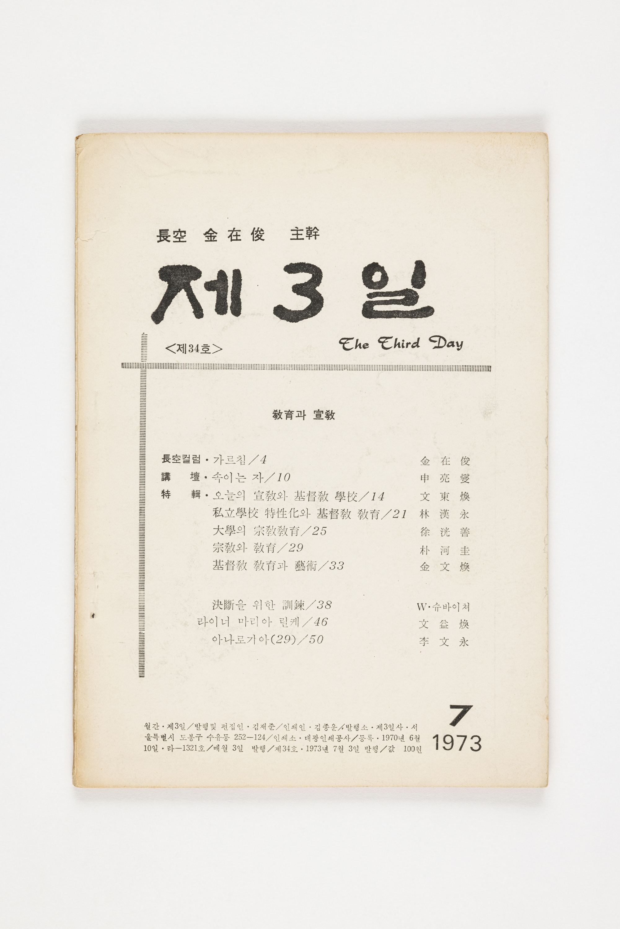 1973.7.3.발행. 52쪽. 신양섭, 문동환, 임한영, 서광선, 박하규, 김문환, 문익환, 이문영의 글 수록.