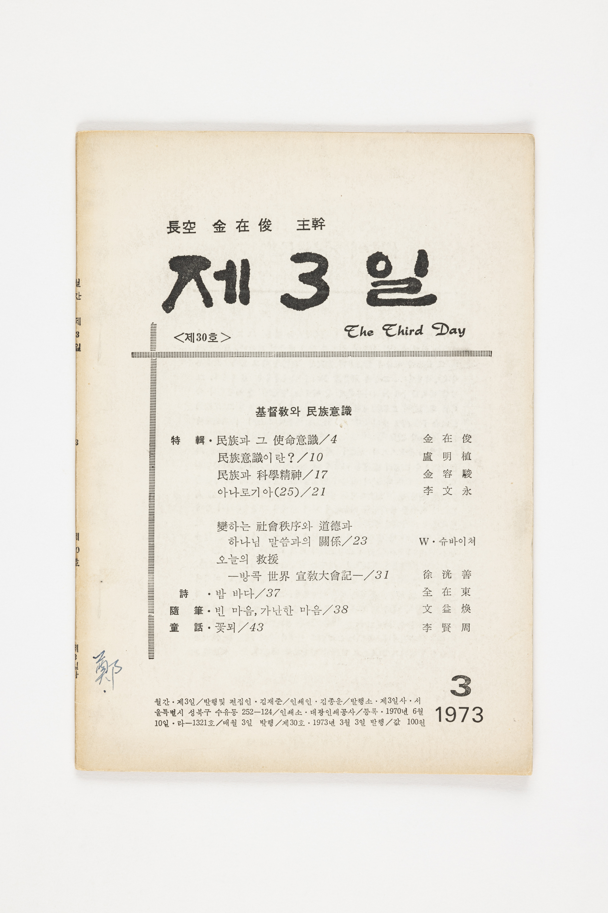 1973.3.3.발행. 48쪽. 노명식, 김용직, 이문영, 서광선, 전재동, 문익환, 이현주의 글 수록.