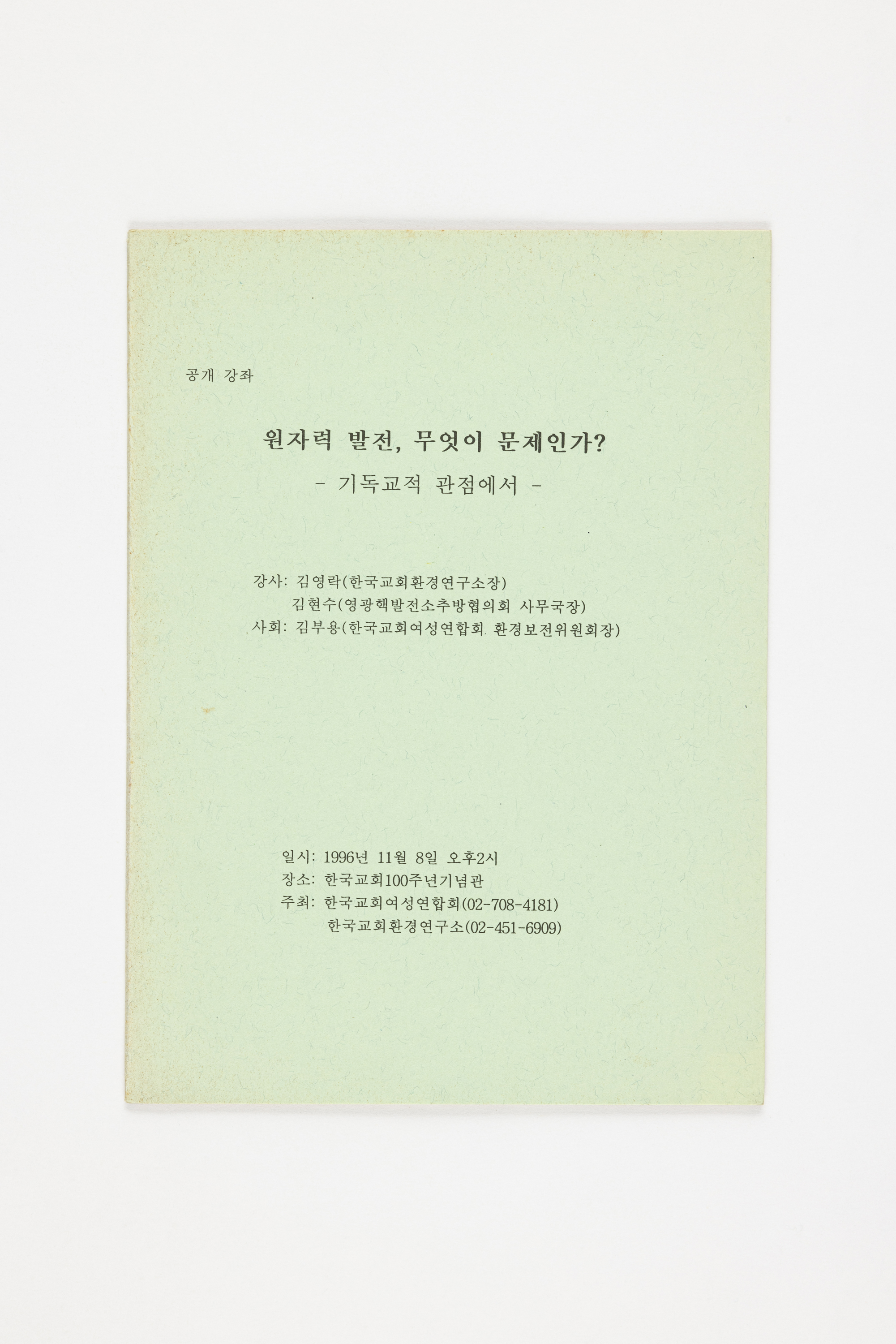 1996.11.8. 오후2시 행사진행. 주최: 한국교회여성연합회, 한국교회환경연구소