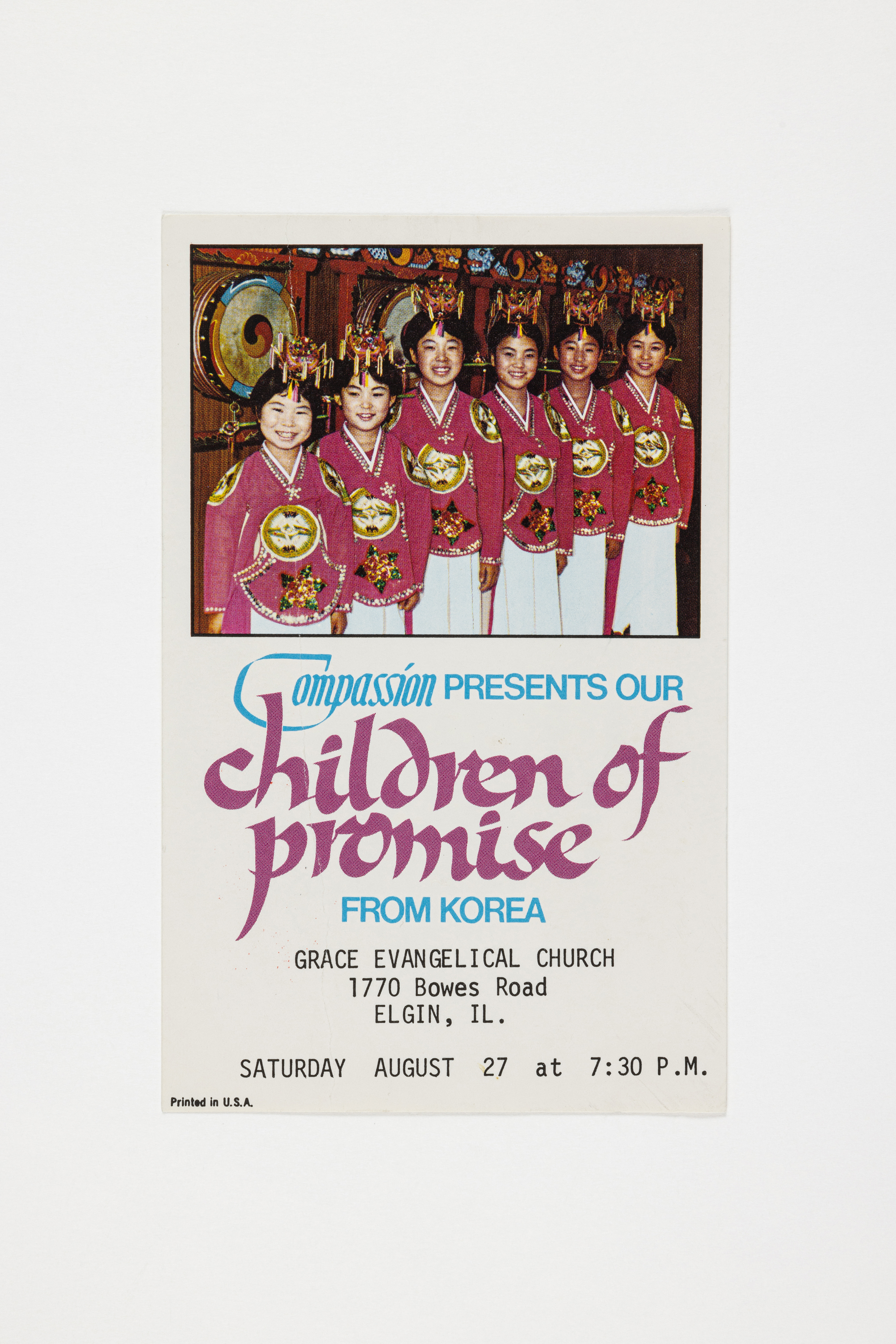 한국 콰이어 팀 "Children of Promise' 사진이 담긴 행사 초대장. 1977년 8월 27일 Grace Evangelical Church.