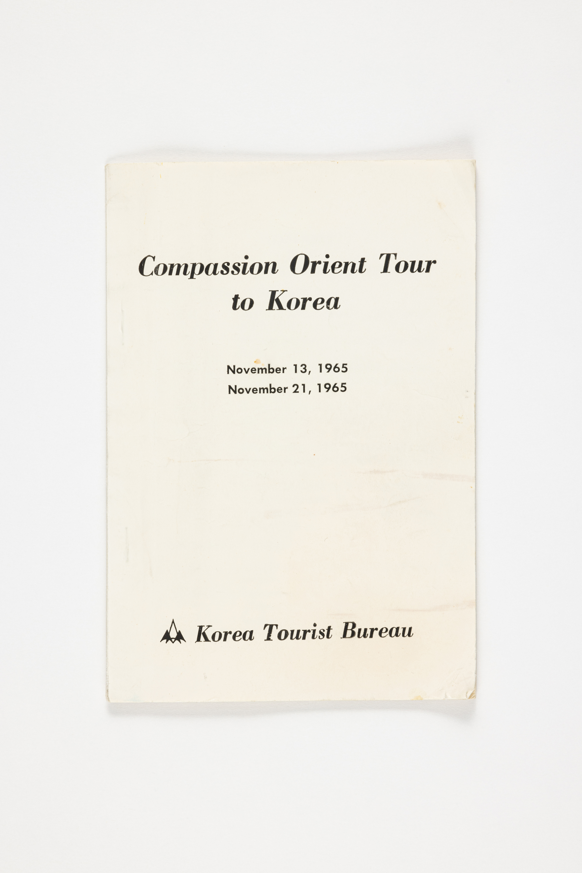 Compassion Orient Tour to Korea. 1965년 11월 13일부터 21일까지의 한국 비전트립팀 두 그룹의 일정, 호텔 방배정 등이 적혀있다.