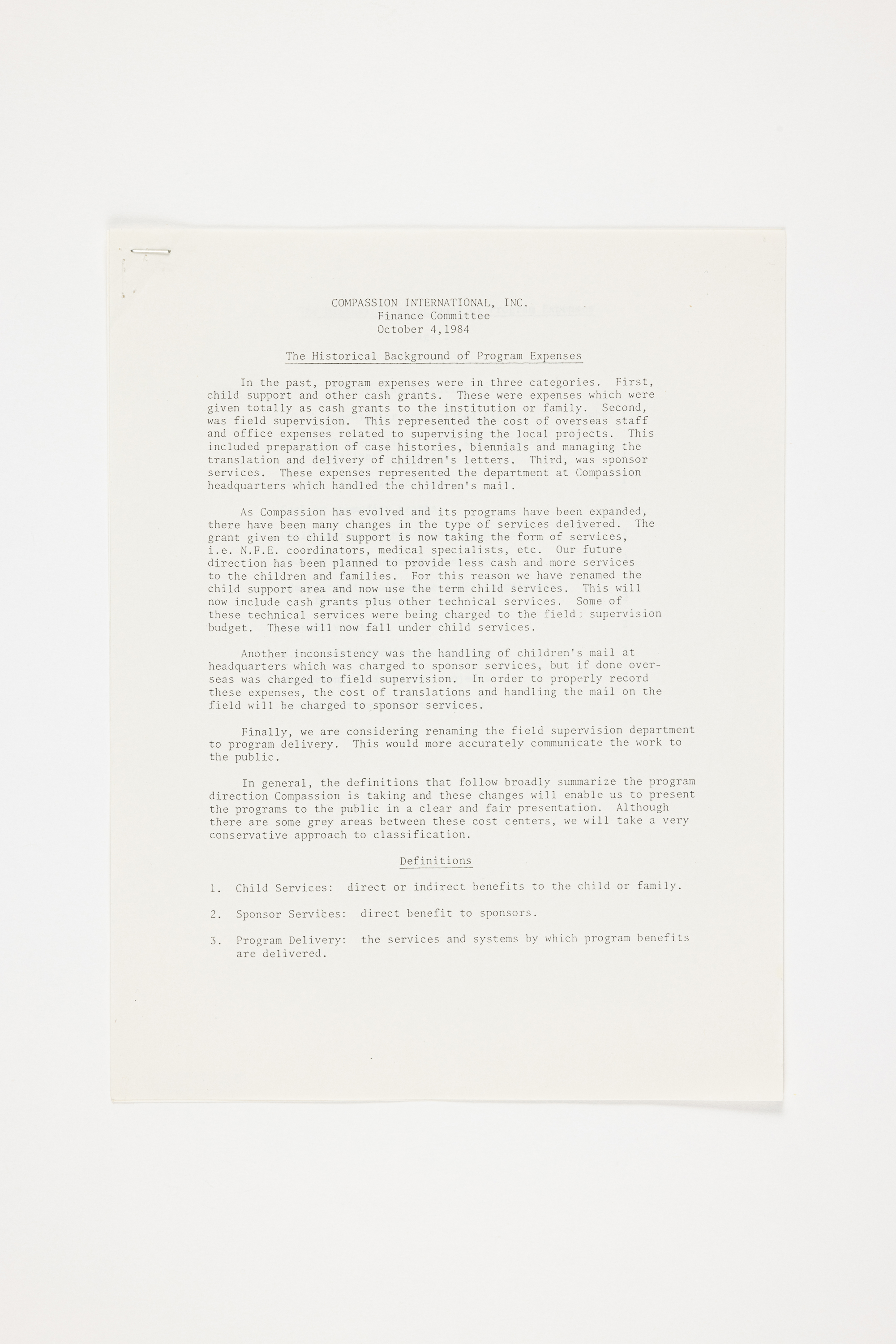 1984년 컴패션 재정 회의(프로그램 비용 배경)