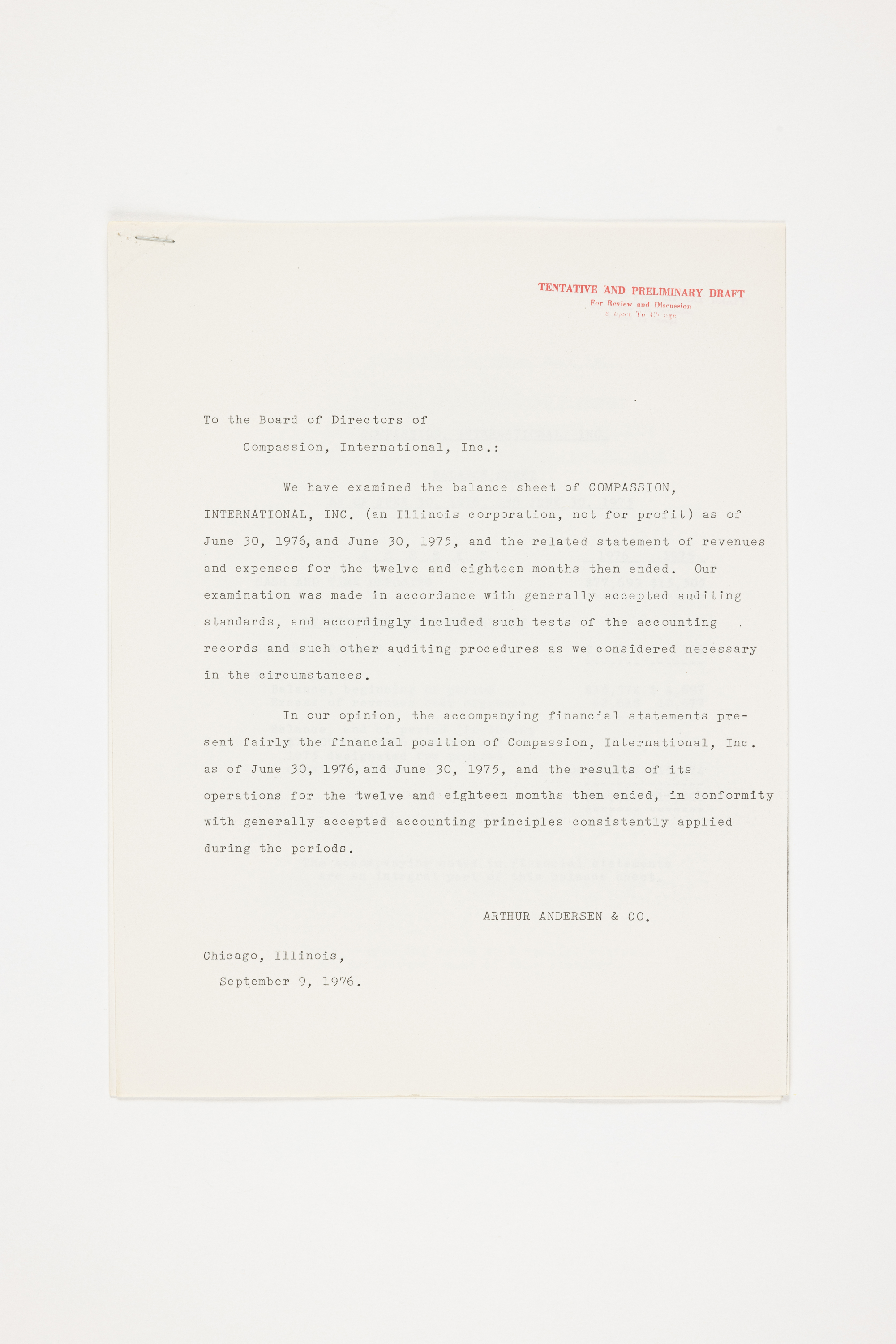 1976년 컴패션 재무재표