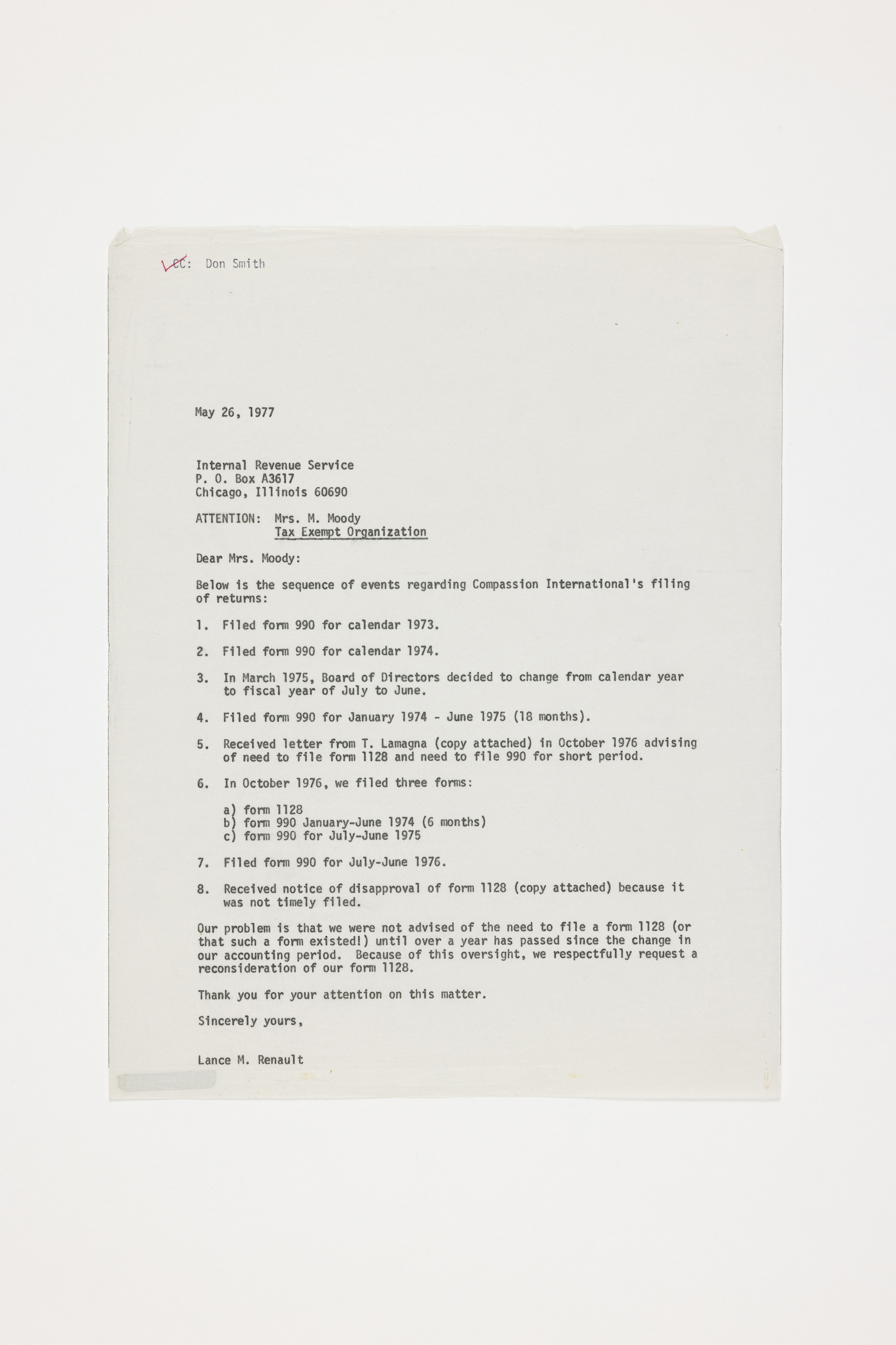 1977년 5월 세금면세자료 (Mrs. M. Moody에게 전달한)