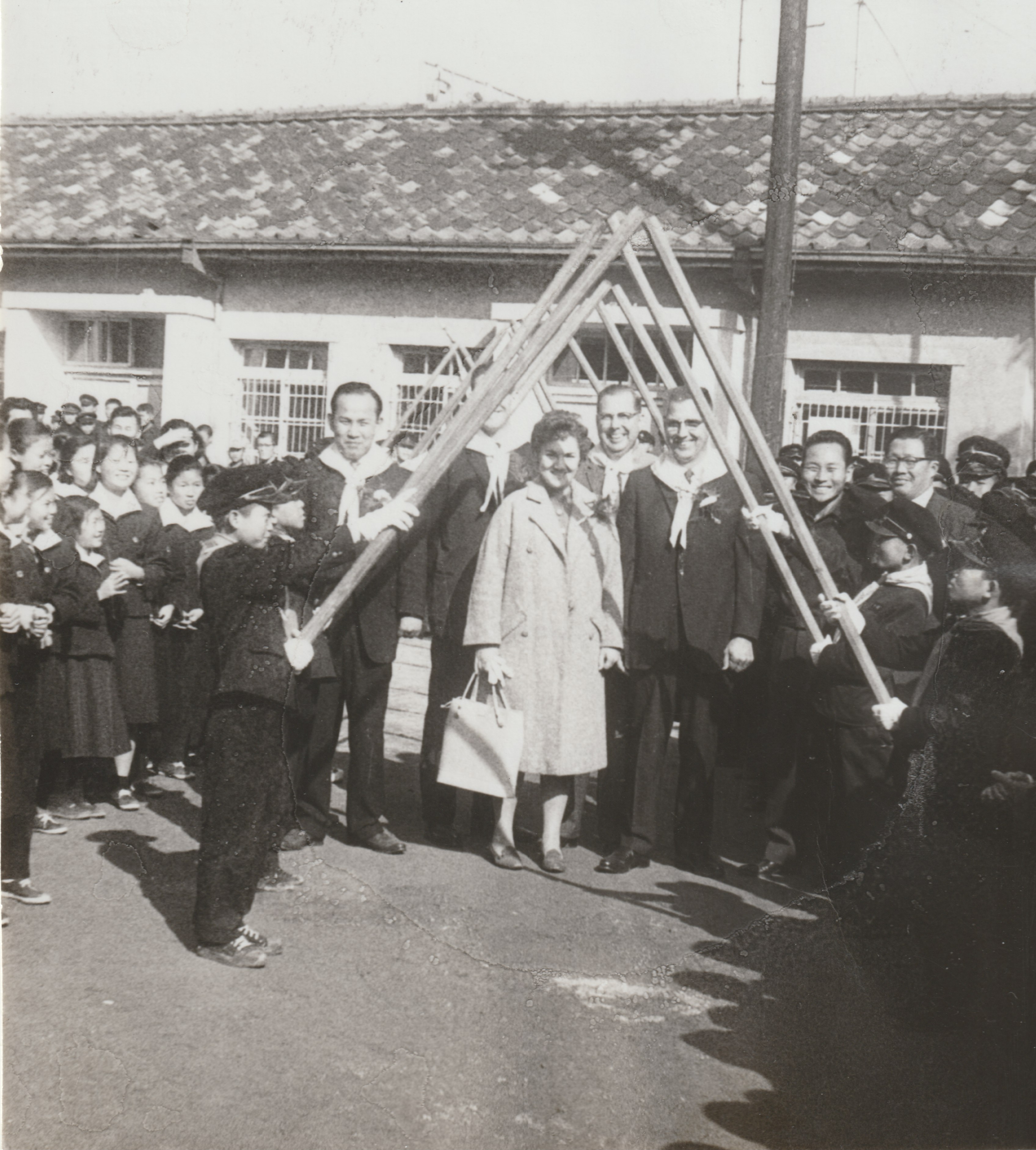 컴패션 보육원 방문시 어린이들이 준비한 환영식에서 촬영한 사진이다. 샐리 스완슨의 오른쪽에 에버렛 스완슨이 보인다.