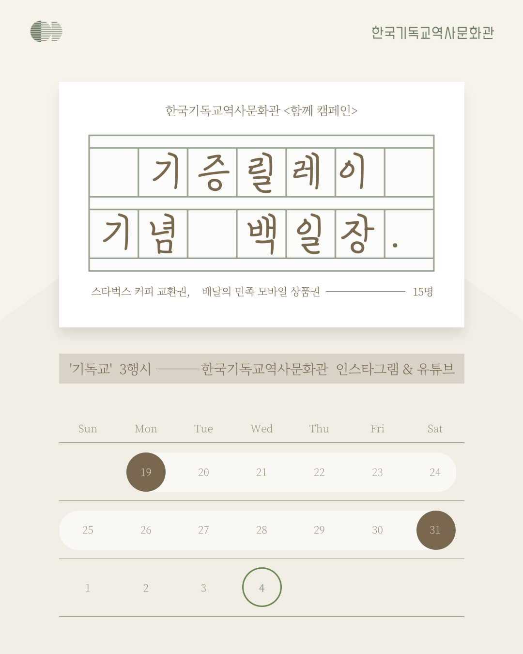 한국기독교역사문화관 인스타그램 : [이벤트] 기증릴레이 기념 백일장 ☜ 클릭하시면 이벤트 해당 게시물로 이동합니다.
